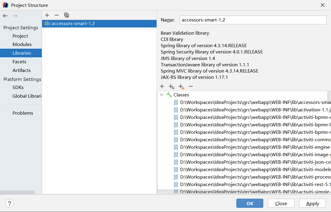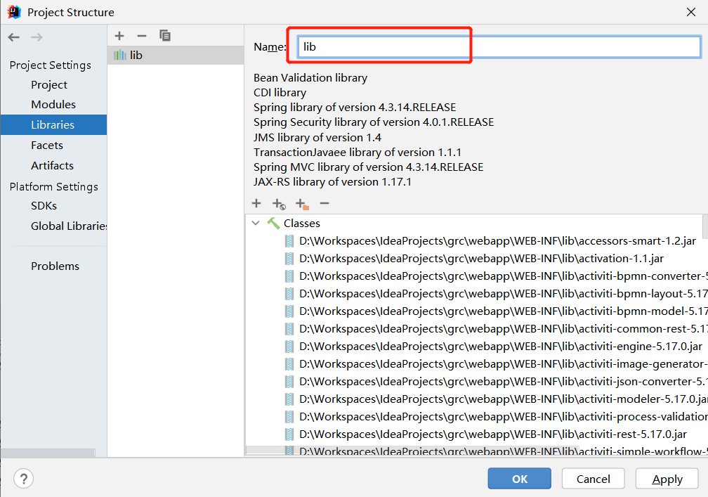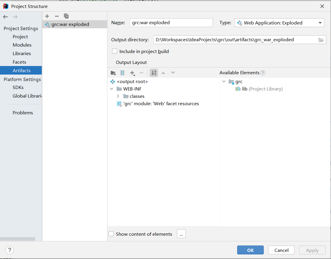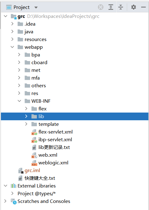 导入项目后的项目结构, lib是存放jar包的目录,grc为我的项目名,lib为项目jar包存放目录