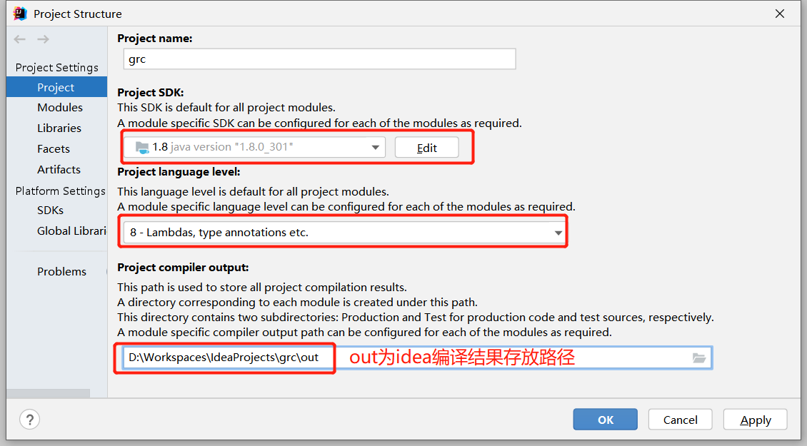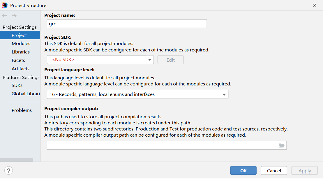 主要配置File-Project Structure(项目结构)-Project Settings(项目设置)下的五个配置项
