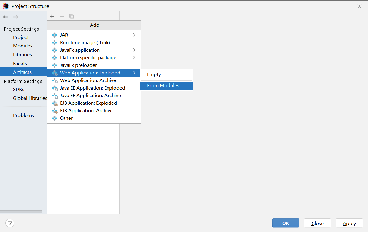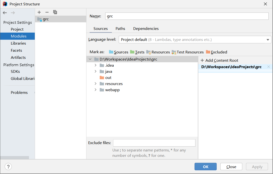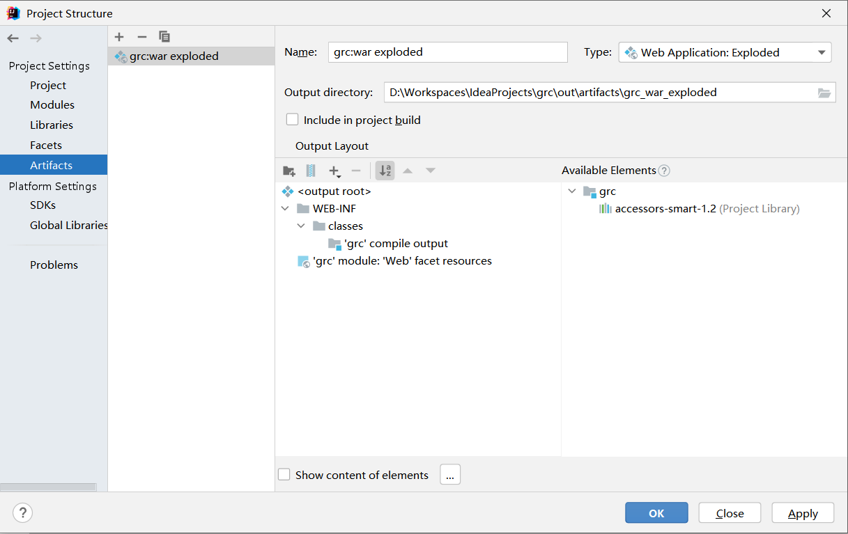 点击+号,选中Web Application:Exploaded-From Modules,选择我们配置的grc模块