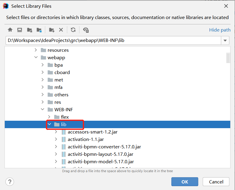 添加后,默认以第一个jar包的名字命名库,先不用管,继续后续操作,完后再改名