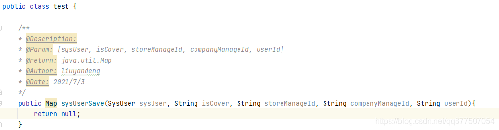 2、定义java方法注释