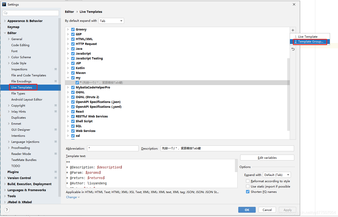 先设置一个名字为my的模板组