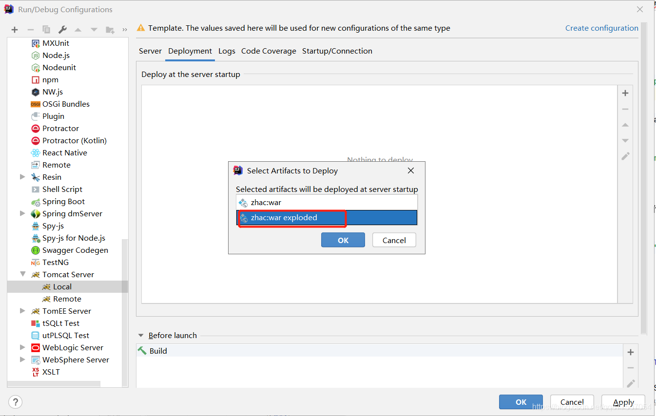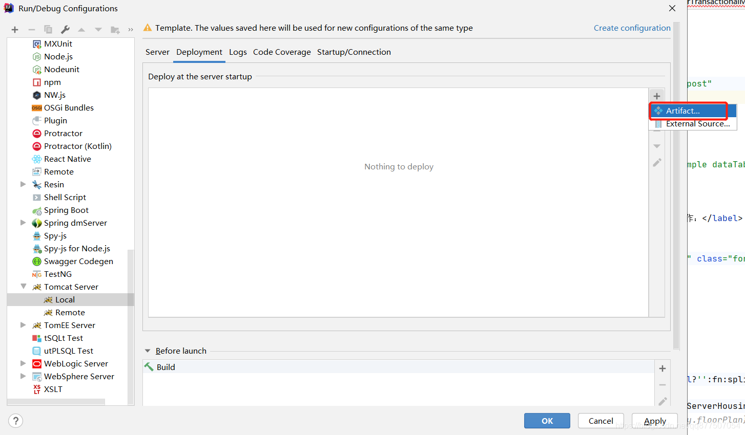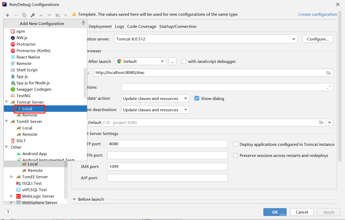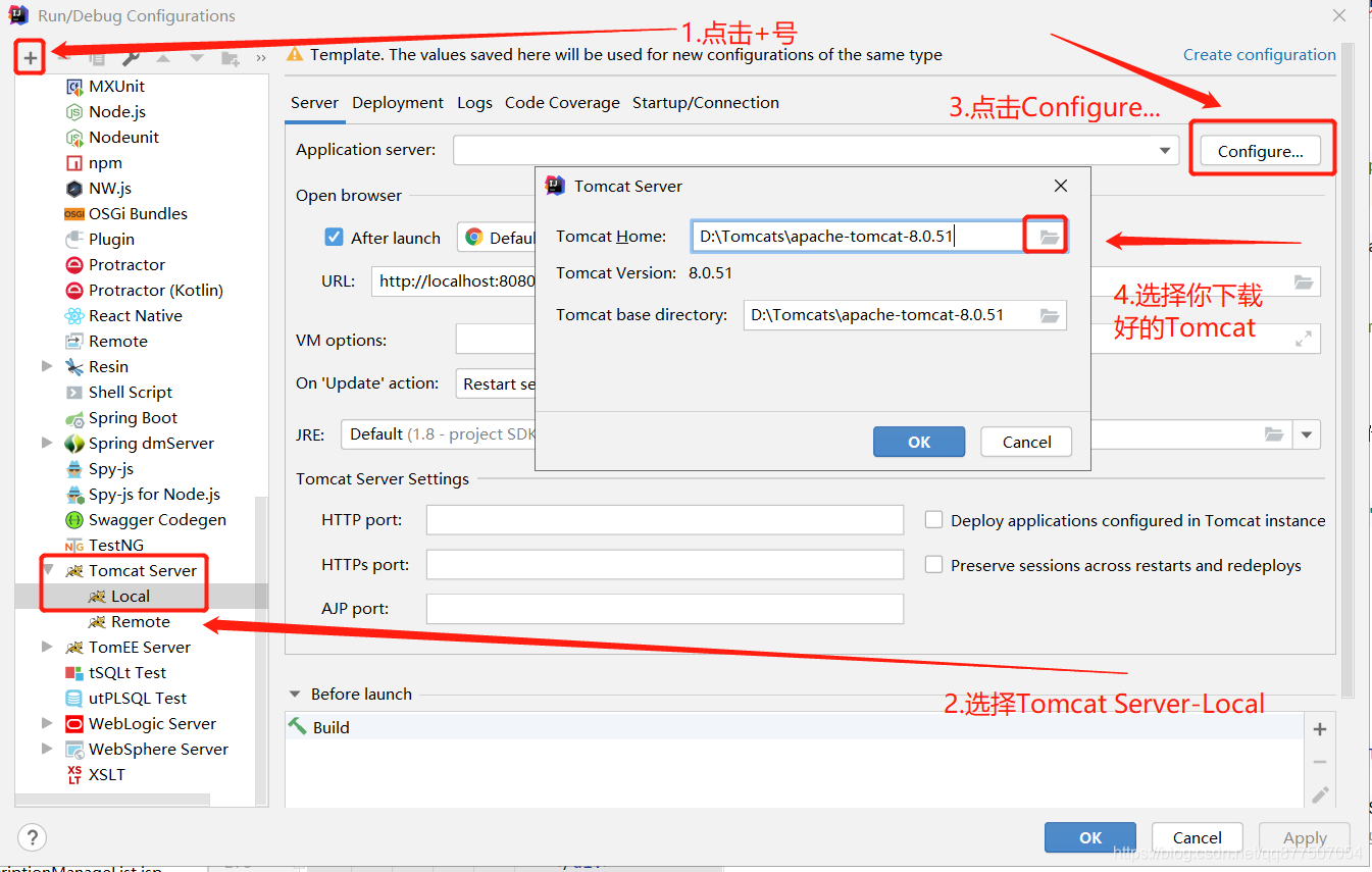 点击Apply,然后再次点击左上角的+号,选择Tomcat Server-Local