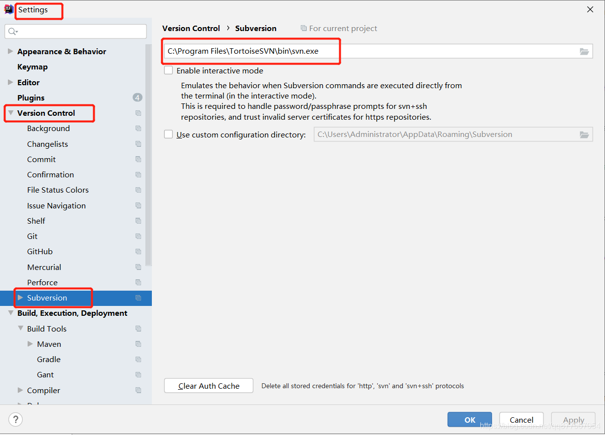 点击File-Settings-Version Control-Subversion,选择你svn安装目录bin文件夹下的svn.exe文件,重启