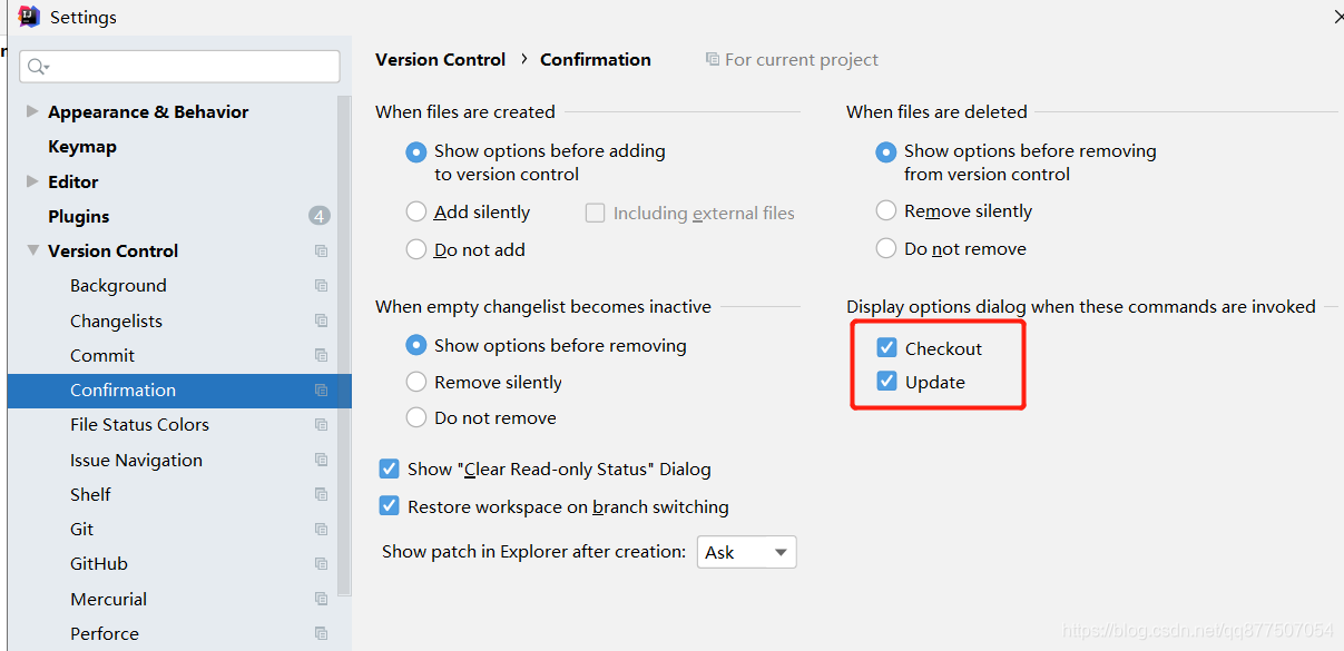 如果点击更新不出现可选框,那就启用一下, File—-Settings—-Version Control—Confirmation