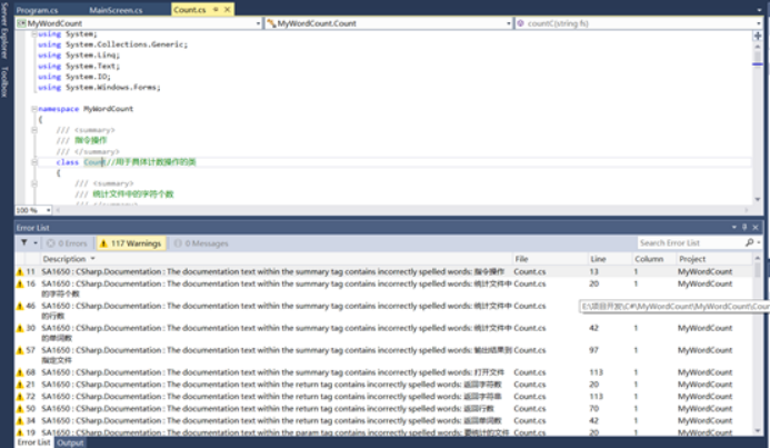 因为此次编写代码用的是C#,所以选择了stylecop来进行静态代码检测。它是代码规范检查工具(Code Review 工具),不仅仅是检查代码格式,而是编码规范,包括命名和注释等。