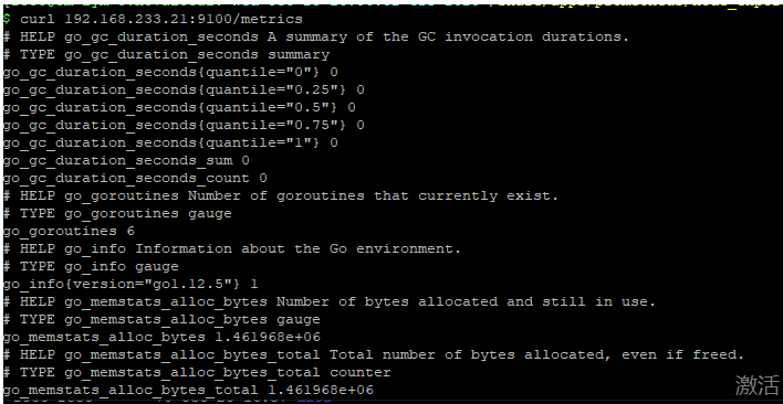 node_exporter 启动之后,我们访问下 /metrics 接口看看是否能正常获取服务器指标: