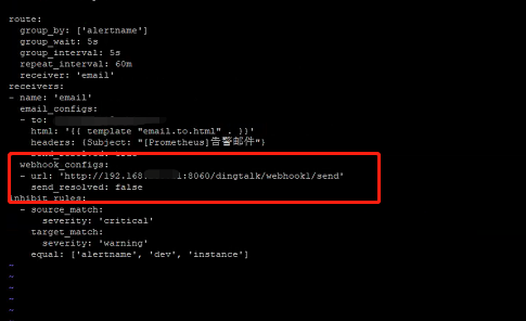 打开alertmanager配置文件 alertmanager.yml增加内容