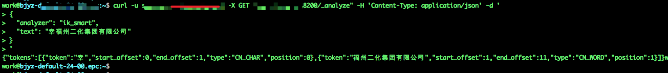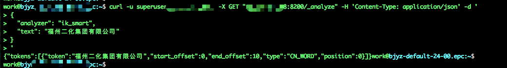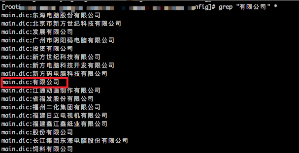为了验证上面这一点:我从main.dic词表中,把“有限公司”删掉了,然后重启ES验证最终切词结果: