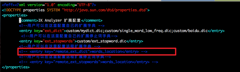 在IKAnalyzer.cfg.xml中,我们看到系统是支持远程词典的: