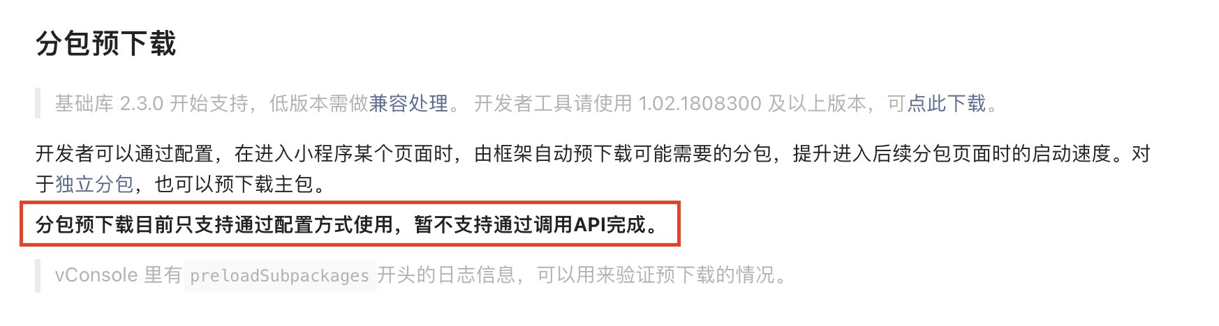 官方文档:https://developers.weixin.qq.com/miniprogram/dev/framework/subpackages/preload.html#%E9%85%8D%E7%BD%AE%E6%96%B9%E6%B3%95