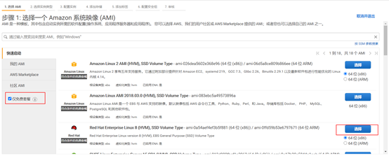 - 控制台 -> EC2 -> 实例:启动实例