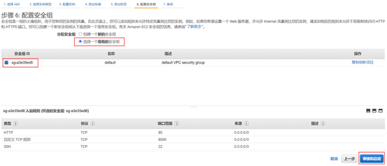 - 选择现有的默认安全组