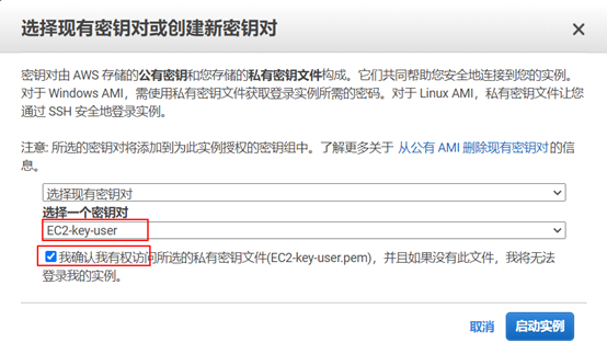- 选择创建的密钥对