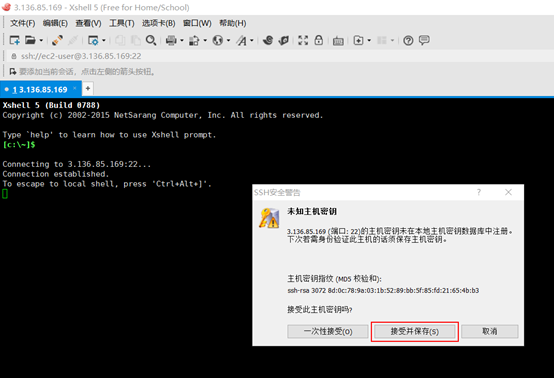 4. 使用 xshell 连接 AWS 实例