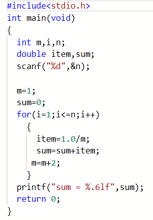 本题要求编写程序,计算序列 1 + 1/3 + 1/5 + ... 的前N项之和