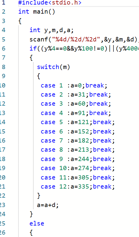 数据表达:本题用了int定义了四个整型变量y,m,d,a