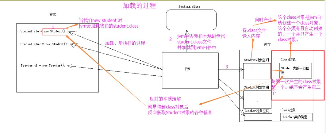 Student stu1 = new Student();//这一new 产生一个Student对象,一个Class对象。