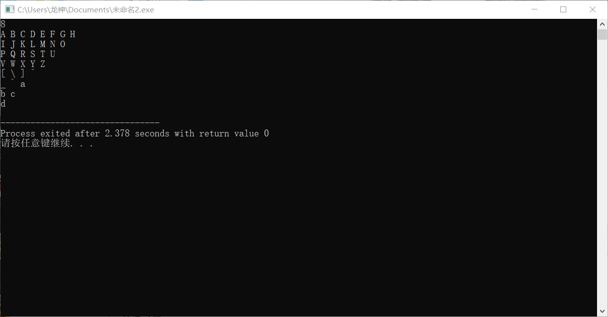 本题要求编写程序,输出n行由大写字母A开始构成的三角形字符阵列。