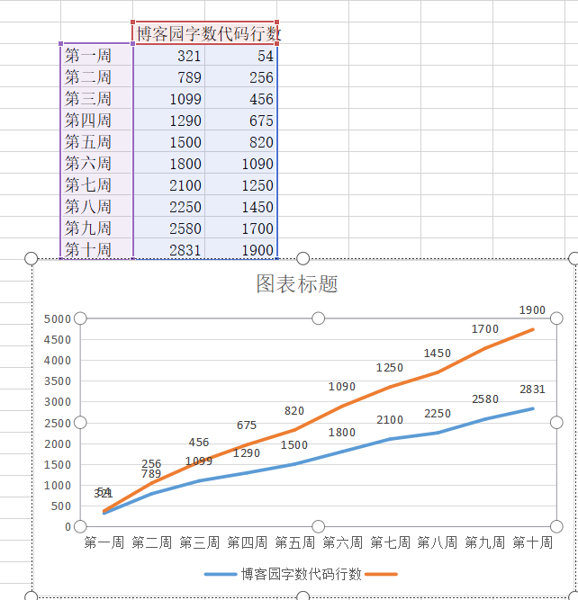 3.2累积代码行和博客字数