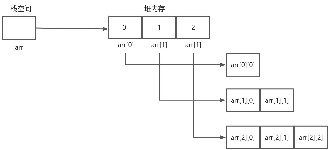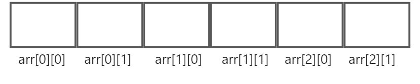 - 二维数组,先按行再按列的方式,依次存储在连续的空间中。