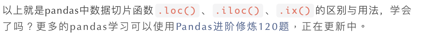 大家好,在使用pandas进行数据分析过程中,回想一下你是怎么对一个数据集进行数据切片,是不是百度:pandas如何提取第x行数据,然后根据一堆结果找到一个能用的就完事了,那么你一定会迷失在pandas中的切片函数:.iloc()、.loc()、.ix()中,本文就是为了解决这个问题,通过一个简单的DataFrame彻底搞明白这三个函数到底有什么区别,又该怎么使用。