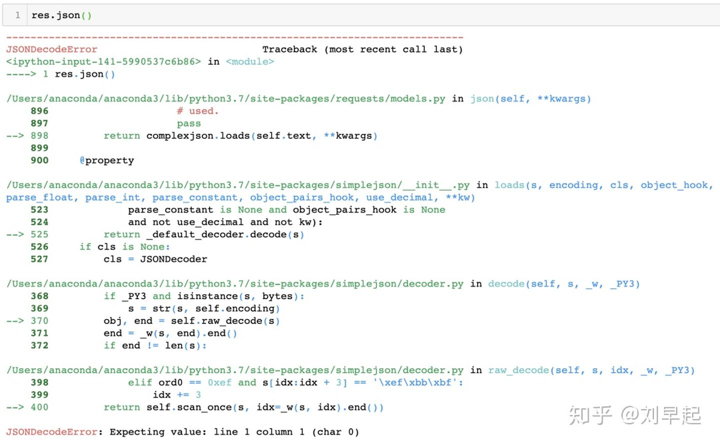 哦豁,报错了,从报错代码来看说明返回的并不能解析为json数据,没事不慌,bs4登场,我们用美丽的汤试试