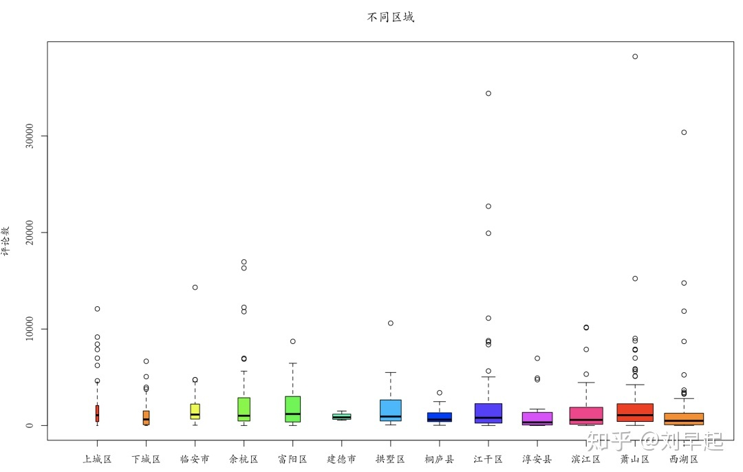 本届我们来分析不同区域对销量的影响,由于我们获得的数据并没有提供直接销售量,因此我们选择评论数来代表销量与杭州市不同区域进行分析