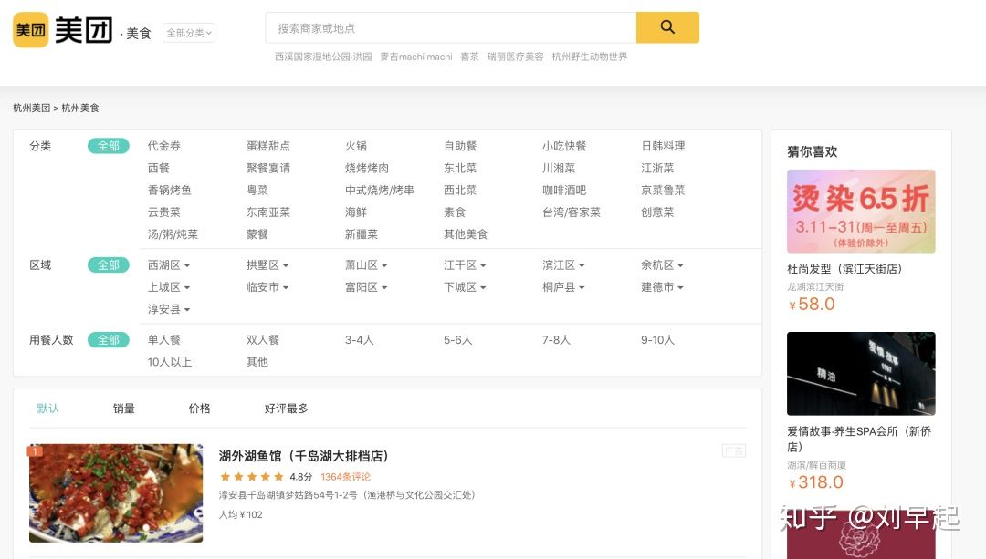 可以看到,江干区、萧山区、西湖区的商家最多,但是销量相对高一点的区是富阳区、拱墅区、萧山区、滨江区,所以如果想在杭州开一家美食店铺,萧山区是一个不错的选择。