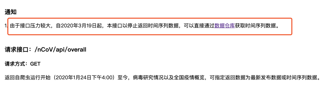 难倒大家的大多数是在全球疫情历史数据,也就是分国家时间序列数据,因为之前介绍的API接口停止返回该数据👇