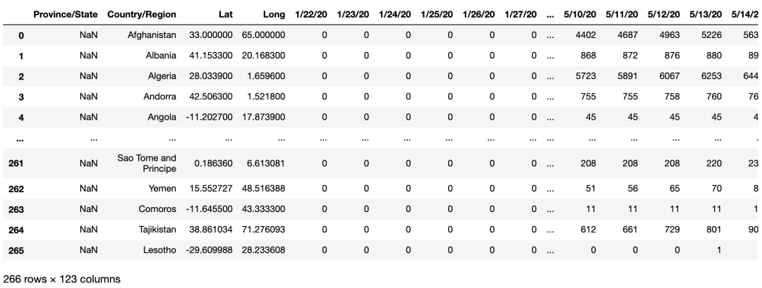 该项目将确诊数据单独整理,并且这种格式的数据更方便我们去可视化。我们依旧用Pandas读取一下试试