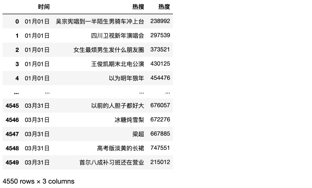 而我要做的就是将这三个月的微博热搜数据处理成这样👇