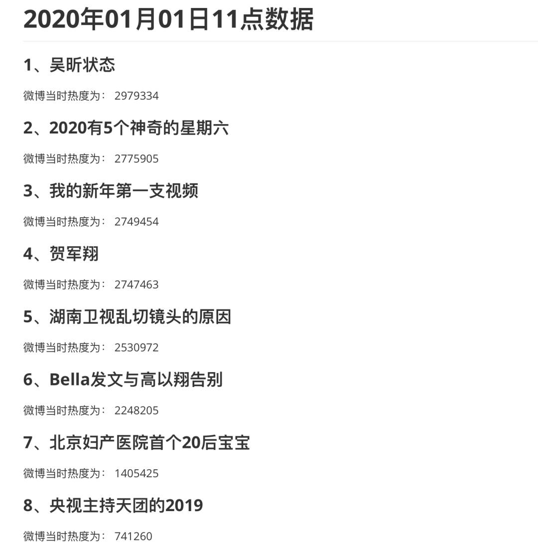 现在我们每天就只剩下23点的热搜数据,虽然是markdown文件,但是Python依旧能够轻松处理,我们打开其中一个来看看