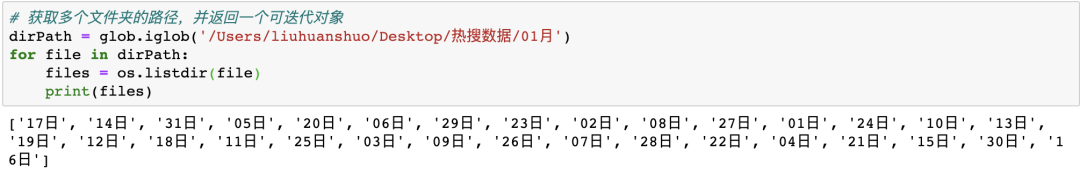 在操作之前我们来思考一下如何使用Python实现,其实和手动的过程类似:先读取全部文件,再对每一天的数据处理、保存。所以第一步就是将我们需要的全部文件路径提取出来,首先导入相关库