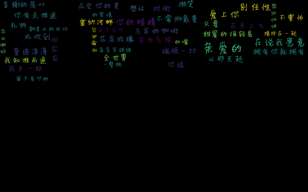 当然图片你可以随便选择,爱心、玫瑰、钻石都可以,并且关于词云图的绘制方法我们已经讲了很多,比如上面的图就是用Wordcloud制作。唯一的难点就是如何将你们之间的聊天记录导出,因为iOS/android和MAC/Windows的操作方式均不一样,并且可能涉及到数据库的解密等操作,但你可以在百度/GitHub等网站轻松找到一些教程,总之不管是朋微信/QQ聊天记录还是朋友圈/说说/微博,这张词云图只要专属于TA就能打动人心~