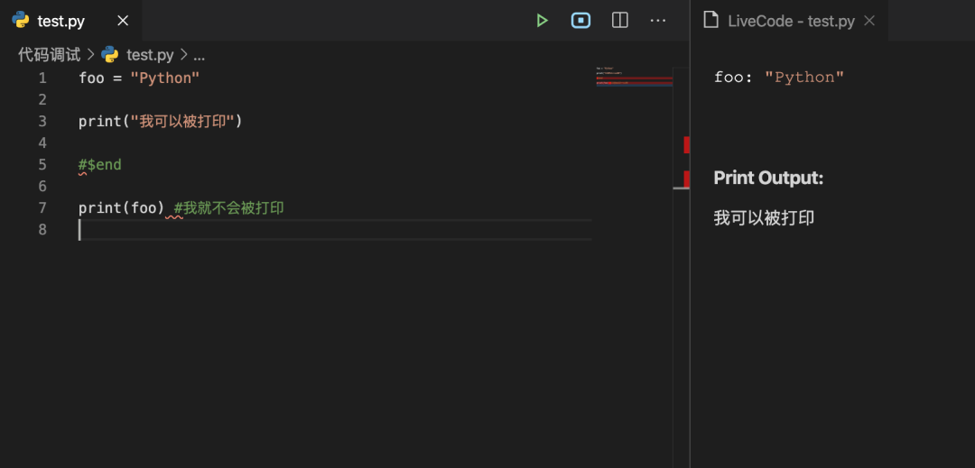 但是需要注意,#$save不适用于某些类型,例如生成器。当然如果我们要运行某些特定的东西而不同时运行整个文件,可以使用#$end注释在代码的结尾。之后的代码将不会实时执行,就像这样👇