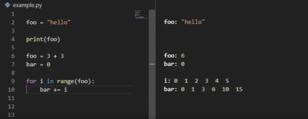 就像上图展示的一样,我们不需要执行Python脚本,该插件会实时展示你的每一个变量值,且能够识别