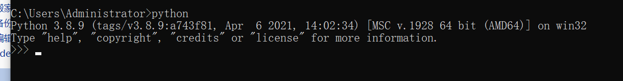 cmd 调出命令,输入python