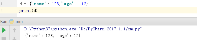 - 字典的每个键值 key:value 对用冒号 : 分割,每个键值对之间用逗号 , 分割,整个字典包括在花括号 {} 中 ,格式如下所示: