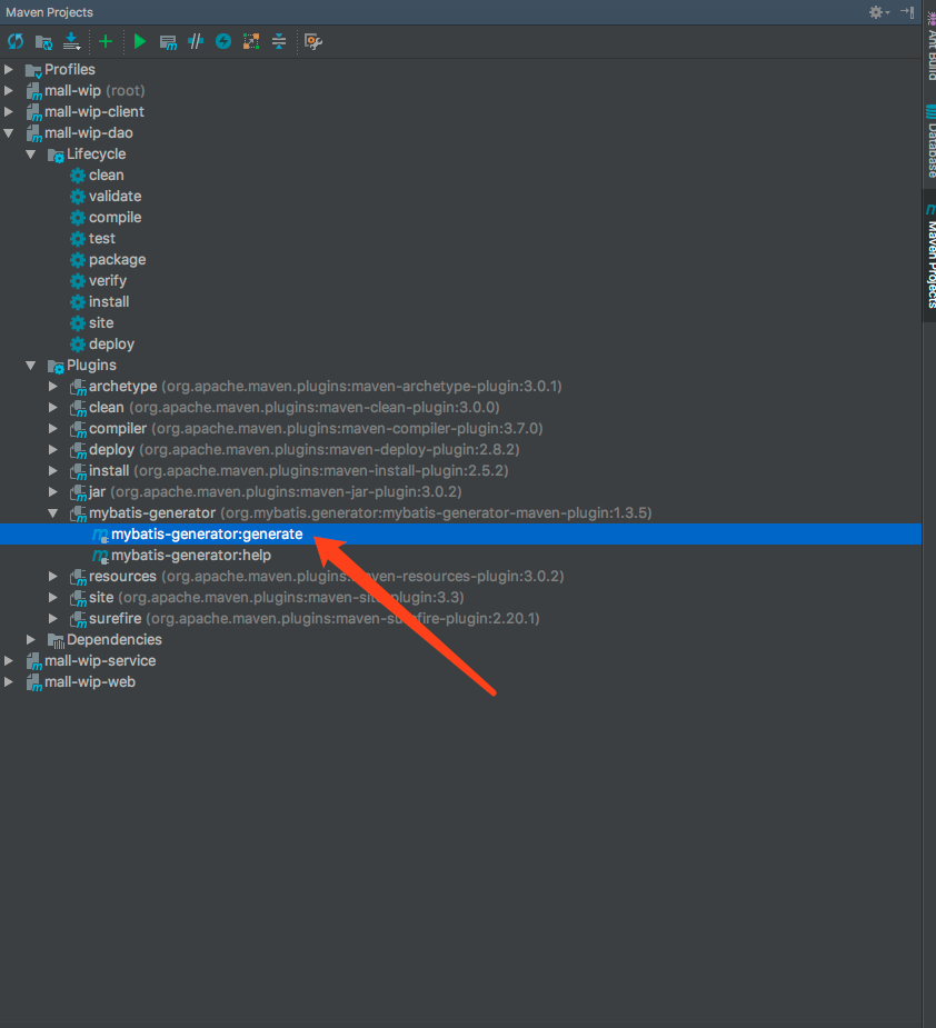 maven projects -->plugins--->mybatis-generator---->mybaits-generator:generate(双击)