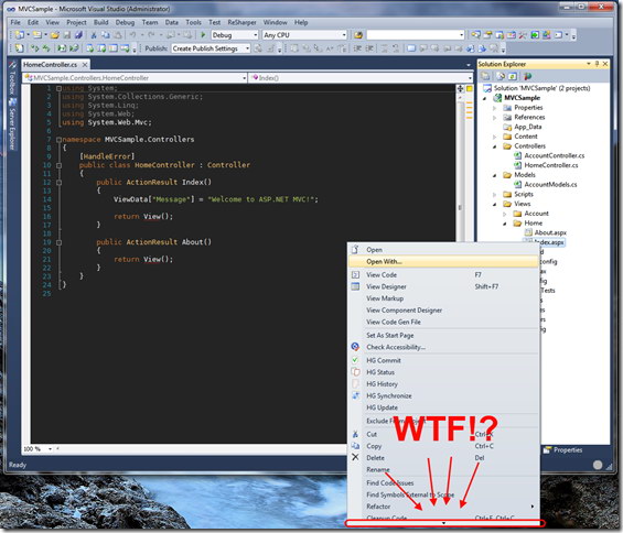 在solution explorer中,如果右键菜单(上下文菜单)过长,VS2010会将其上端或下端卷起(scrolling status)