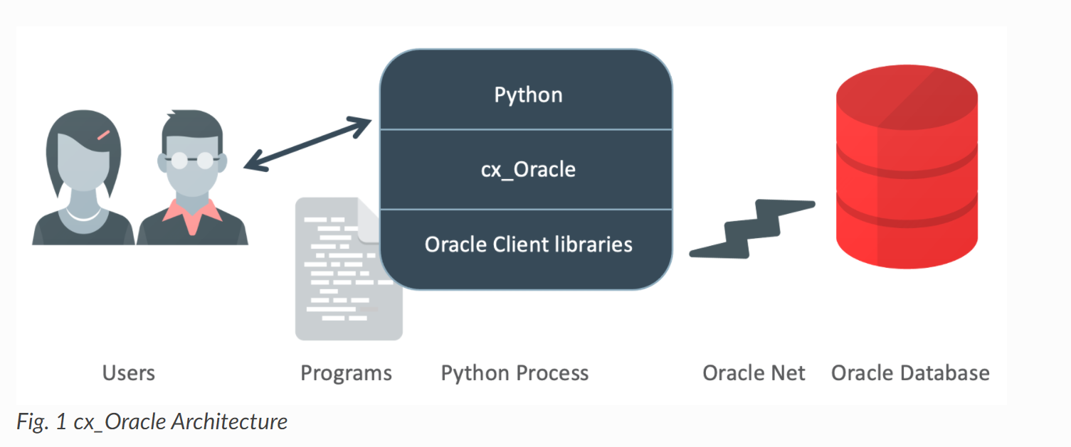 python程序调用cx_oracle函数。x_Oracle内部动态加载Oracle Client库来访问Oracle数据库。 数据库可以在与Python相同的机器上,也可以是远程的。