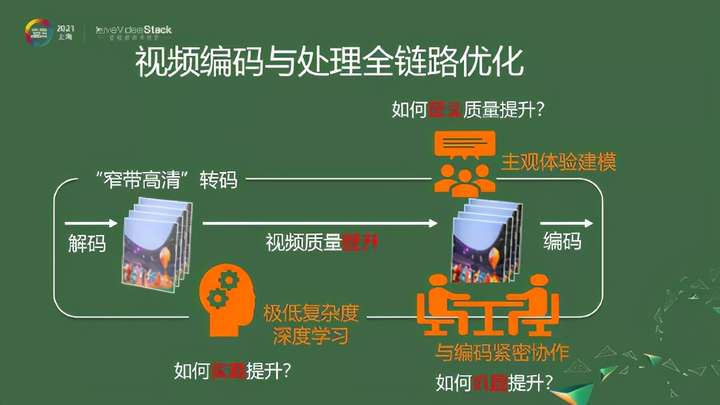 前面提到,无论是UGC的视频,还是很多直播的视频,他们的质量是参差不齐的。比如我们做村播的时候,在农村的这些主播,他的水果或蔬菜给人看到的是不够清晰的。所以我们需要去把这项内容做得更好,我们既需要去降低带宽又需要同步去提升他的画质。我们主要是通过把视频处理,包括视频编码联合做好,来达到这样的效果。