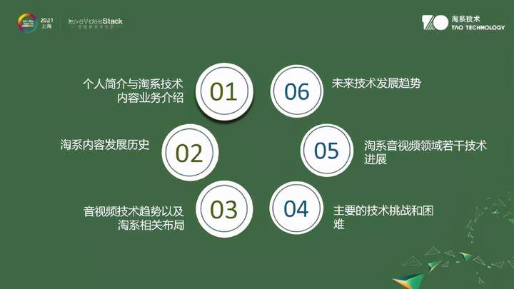 首先,得益于淘系技术和LiveVideoStack组委会的盛情安排,使得我和在座各位有了沟通的机会,非常感谢。我会首先做一个简单的自我介绍和业务介绍,之后简单交代淘系内容的业务以及相关技术、尤其是音视频技术的发展历史。在这段发展历程中,我们也围绕着音视频技术的主要趋势做了很多技术方面的布局,也和大家一样面临着不少技术挑战和问题,在解决这些问题时也取得了一定的成绩。最后我想和大家讨论音视频技术未来的发展趋势。