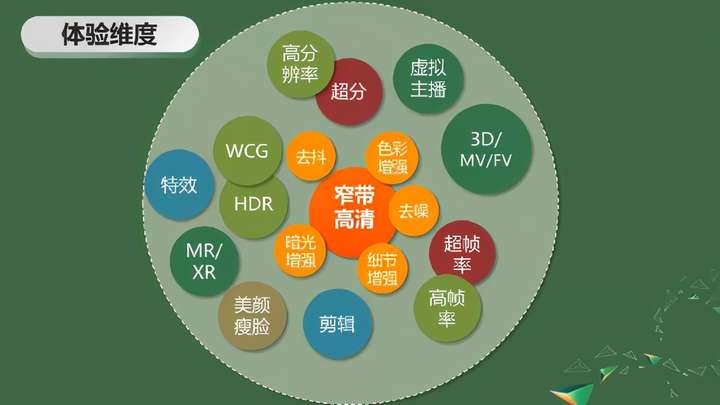 基础体验是比较确定的,在我看来可以分成三大块。在传输、编码、处理这三大核心功能模块里面要做到最好。我们其实是要追求每个模块各自的代差的,每个块都可以做极致的优化。从视频的表征上来讲,我们要不停地升级,因为用户有日益增长的视频体验需求,他可以今天要1080p明天要4K甚至8K,包括更高的帧率,宽色域HDR也都是要去追求的。这里面有一个看似较小但是比较关键的问题:比如你如何去判断同样场景720p60帧和1080p30帧哪个视频更好?这是如何去做跨尺度的质量评价的课题,因为这样我们才知道如何配置我们输入的视频源,达到最好的效果a。