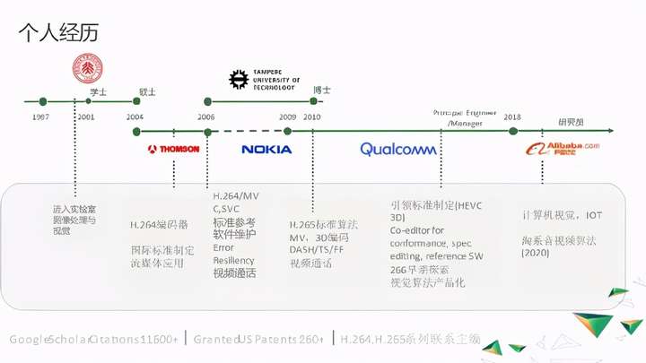 可能进入音视频技术行业比较早的人可能也知道我在视频标准方面也做了一些还算显著的工作,我就不赘述了。