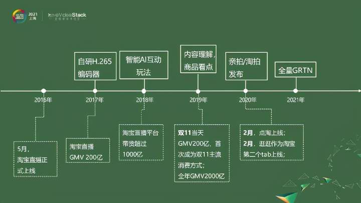 大家可以大概了解一下,淘宝直播在2016年诞生,随着业务的快速发展,到达了每年数千亿的GMV。之后我们又孵化出了点淘和逛逛这样的视频内容强相关的产品。