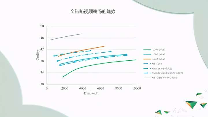 以下是我对未来趋势的判断,以往比如说我们的标准H.264、AVC、H.265、HEVC、H.266、VVC都已经基本定义好了视频服务的质量和带宽权衡的上限。但是在所需要处理的场景里面,可以通过窄带高清和智能编码的技术突破代际的限制。