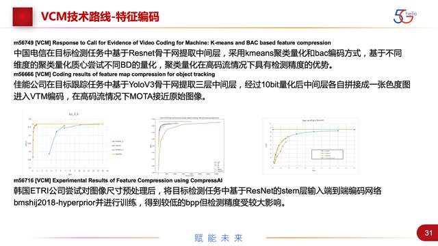 中国电信提出了在目标检测里,基于ResNet骨干网提取中间层,采用kmeans聚类和bac编码,基于不同维度的聚类量化质心尝试不同BD的量化,在高码流情况下具有检测精度的优势。还有佳能公司和ETRI公司都做了尝试,目前压缩性能还不是特别好。