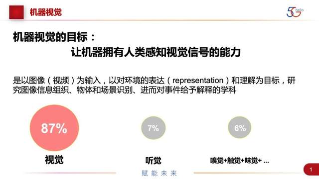 我简单介绍一下背景。首先,现在其实物物通信已经逐渐在超越和取代人和人之间的通信,机器视觉编码的目标是,就是让机器拥有人类感知视觉信号的能力,代替人类大脑,作为机器大脑来服务于整个机器系统。根据统计数据,视觉是占据了人类所有感官数据摄入的87%。神经网络各方面的研究,包括脑机的研究,都是从视觉作为切入的,在机器的层面,视觉也是一个最重要的信息来源,所以我们把它作为一个首先要攻克的目标。